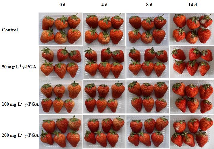 | 图1 冷藏条件下聚谷氨酸对草莓果实保鲜效果的影响 |