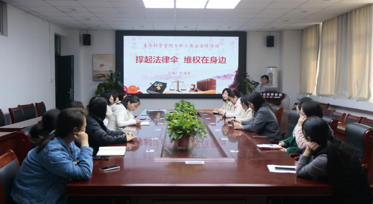 在12#515会议室开展女职工维权知识讲座,学院全体女职工参加此次讲座。