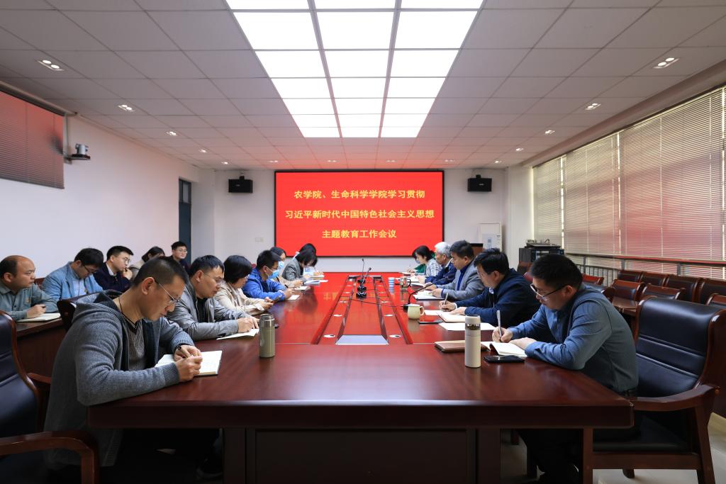 在12号楼708会议室召开学习贯彻习近平新时代中国特色社会主义思想主题教育工作会议。两个学院的科级及以上干部、各党支部书记参加会议。