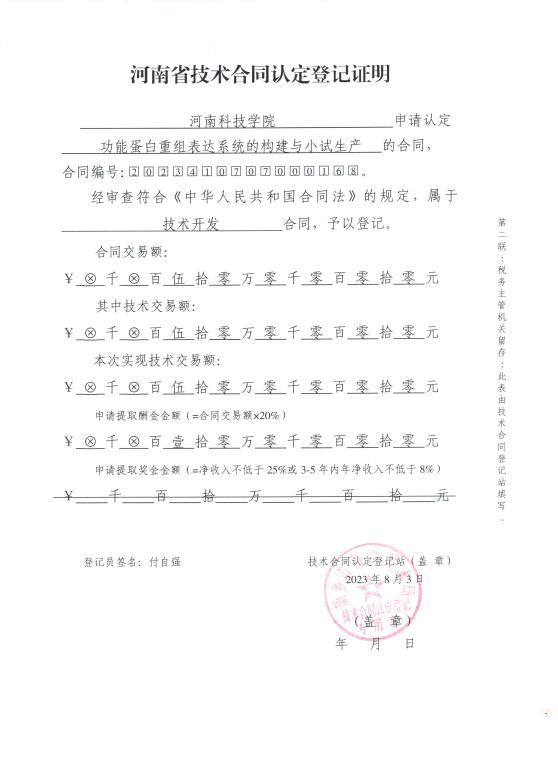 近期,91国产 李林波博士喜签50万元的科研横向合作项目《功能蛋白重组表达系统的构建与小试生产》,该项目是今年4月份91国产 新建以来获得的最高横向经费。