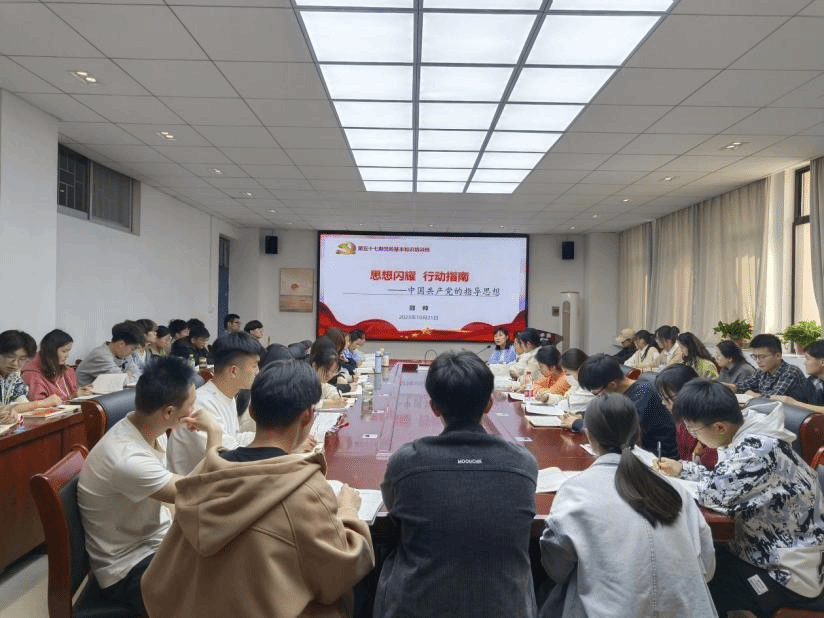 邵帅以“思想闪耀,行动指南”为题,详细讲授了党的指导思想的基本知识。
