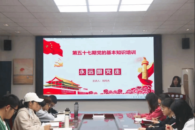 在12#515会议室和12#4教室进行第57期党的基本知识培训。学院党委副书记邵帅,团委书记龚颀杨,辅导员郑丹杰、董玉玉及86名学员全部参加此次党课培训。