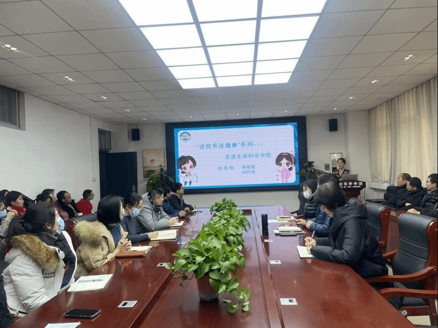 邀请校医院李艳丽院长、刘玲枝医生开展健康教育知识培训,学院党委书记郭建勋、党委副书记邵帅、副院长张明霞及学院全体教师参加此次培训。