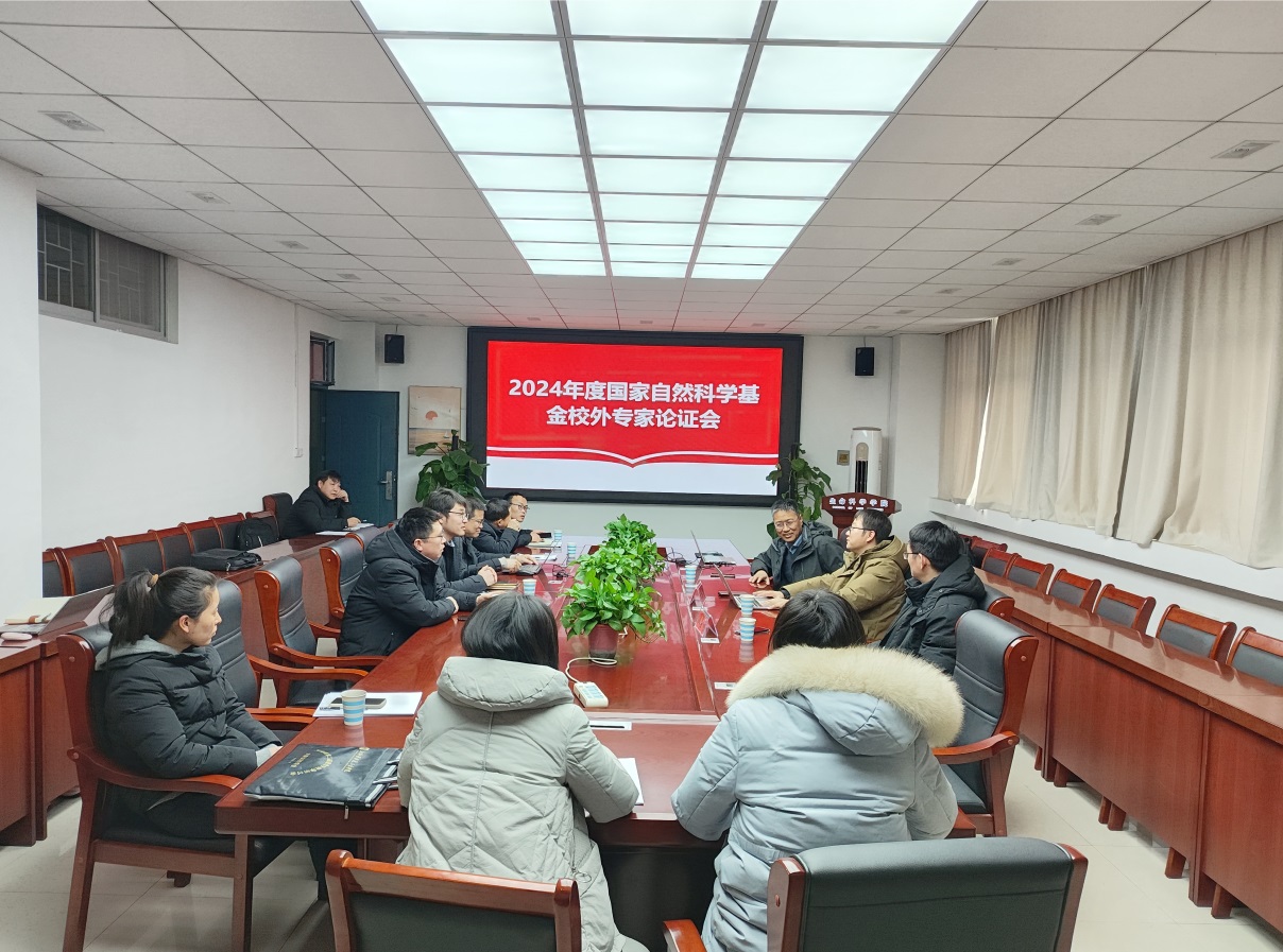 在12号楼515会议室举行2024年度国家自然科学基金校外专家论证会。学院邀请西北农林科技大学齐亚飞教授、陕西师范大学张美祥教授担任校外论证专家,会议由院长张守涛教授主持,执行院长杨天佑、副院长李志刚和申报基金的教师参加了会议。