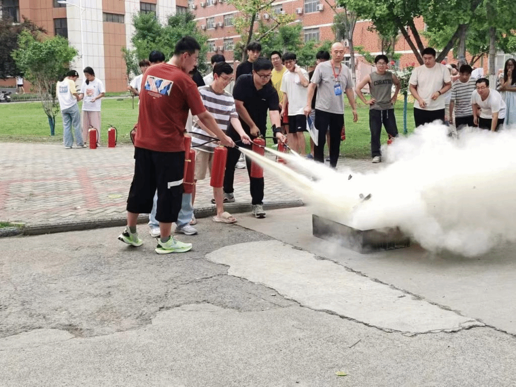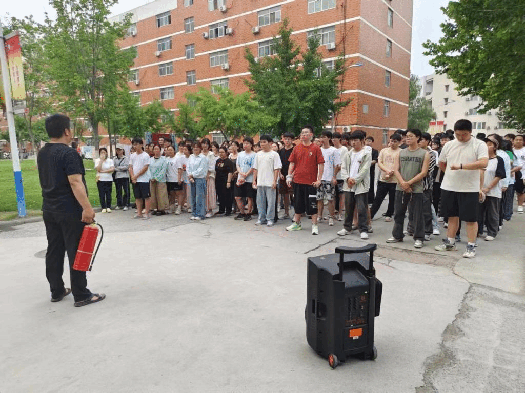 组织暑期留校学生开展消防演练,学院全体留校学生参加此次消防演练。