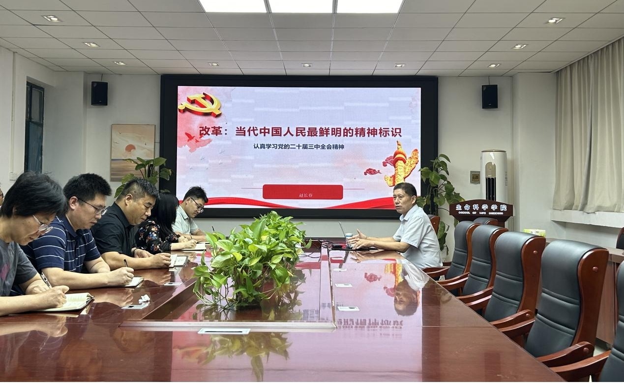 在学院会议室召开党委理论学习中心组党的二十届三中全会精神专题学习会,邀请校党委办公室、党委督查室主任赵长春围绕党的二十届三中全会精神作专题报告。学院党委中心组成员、支部书记及科级以上干部参加会议。