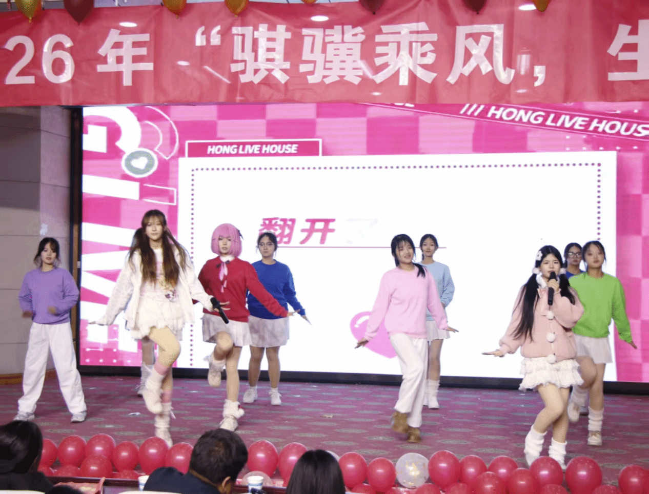 晚会在开场舞《我的未来式》中正式拉开帷幕。小品《网络神医》、弹唱《爱你》、舞蹈《Cheer主打时刻》等精彩节目陆续呈现,歌曲《故乡》《赤伶》等歌声嘹亮,舞台下喝彩阵阵、掌声四起。《COS走秀》惊艳亮相,他们迈着自信的步伐,在灯光下尽情展现着青春的靓丽与张扬,每一个转身、每一个定格,都尽显青春的意气与时尚风采。