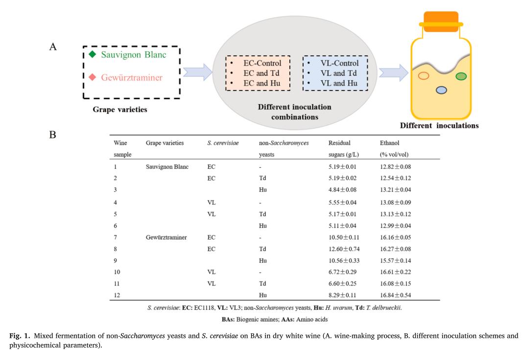 张明霞教授团队在Food Bioscience(中科院一区)发表了题为“The effect of non-Saccharomyces yeasts on biogenic amines in Sauvignon Blanc wine and Gewürztraminer wine”的研究论文。