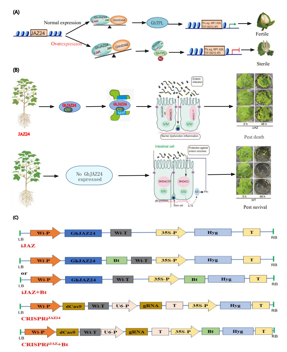 | 图1 GhJAZ24的双重功能及其在抗虫转基因作物中的潜在应用 |