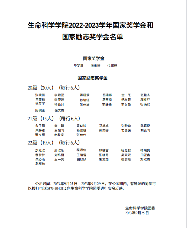 依据《91国产 国家奖学金管理办法(试行)(校发字〔2019〕115 号)》、《91国产 国家励志奖学金管理办法(试行)(院发字〔2019〕116 号)》等文件精神,结合91国产 实际,在91国产 学生工作领导小组的指导下,本着公平、公正、公开的原则,以学生德、智、体、美、劳综合积分排名为主要依据,评选出91国产 2022-2023年度国家奖学金名单、国家励志奖学金名单,现将拟定名单公示如下: