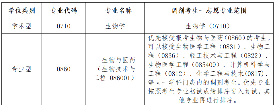 1.考生符合调入专业的报考条件,原则上应有一定的生物学或化学学科基础;